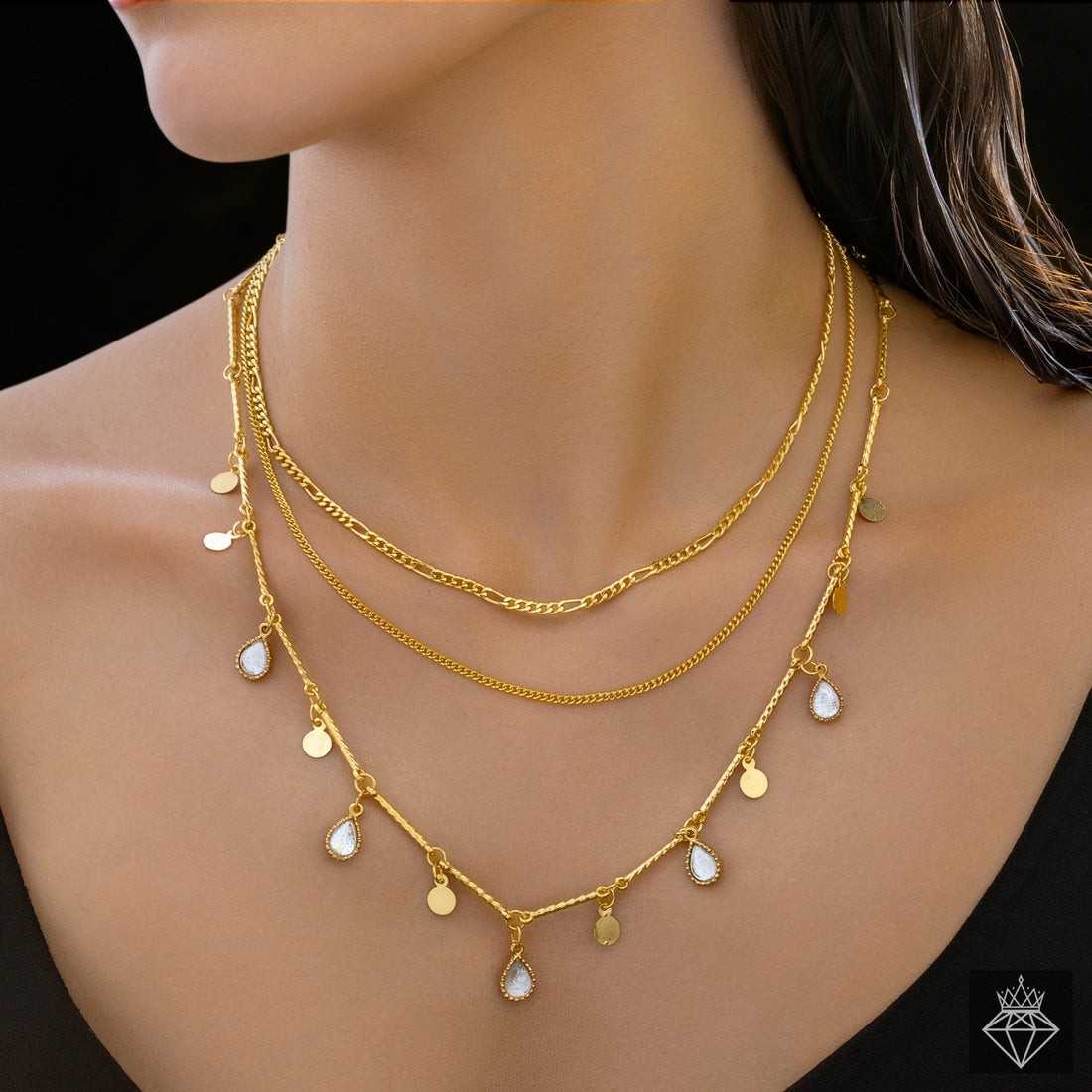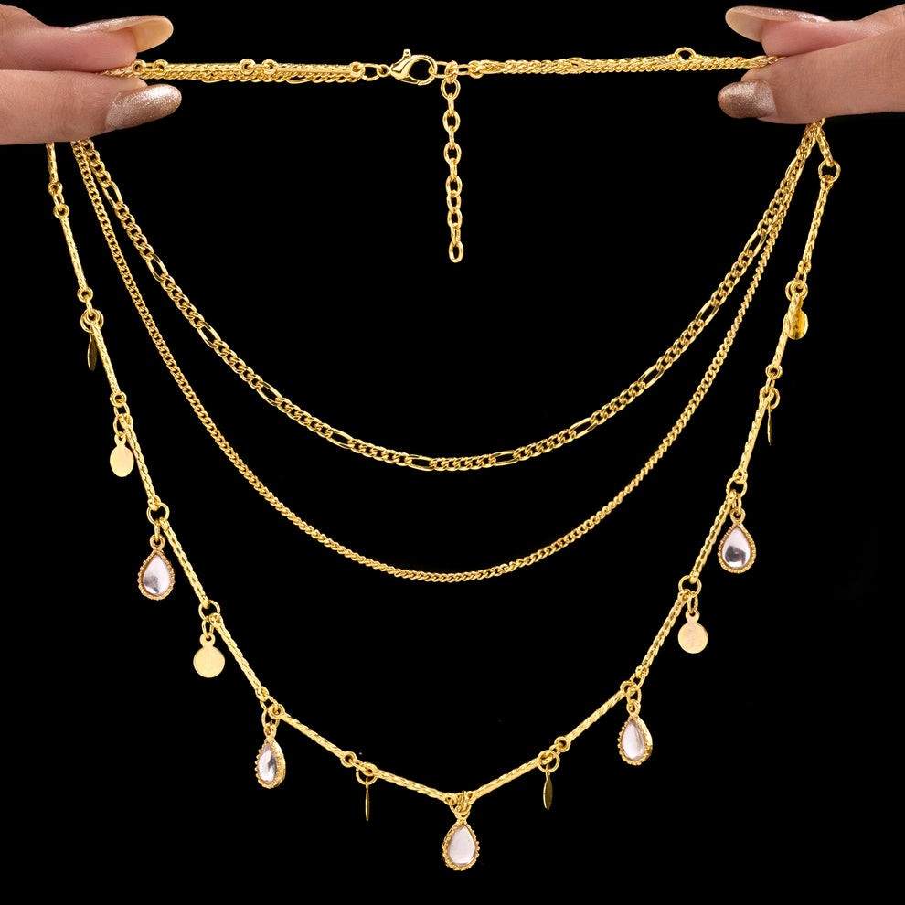 PRANJO Anti-Tarnish Triple Layer Golden Chain & Charms Necklace